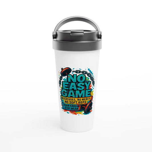 NO EASY GAMEWhite 15oz Stainless Steel Travel Mug